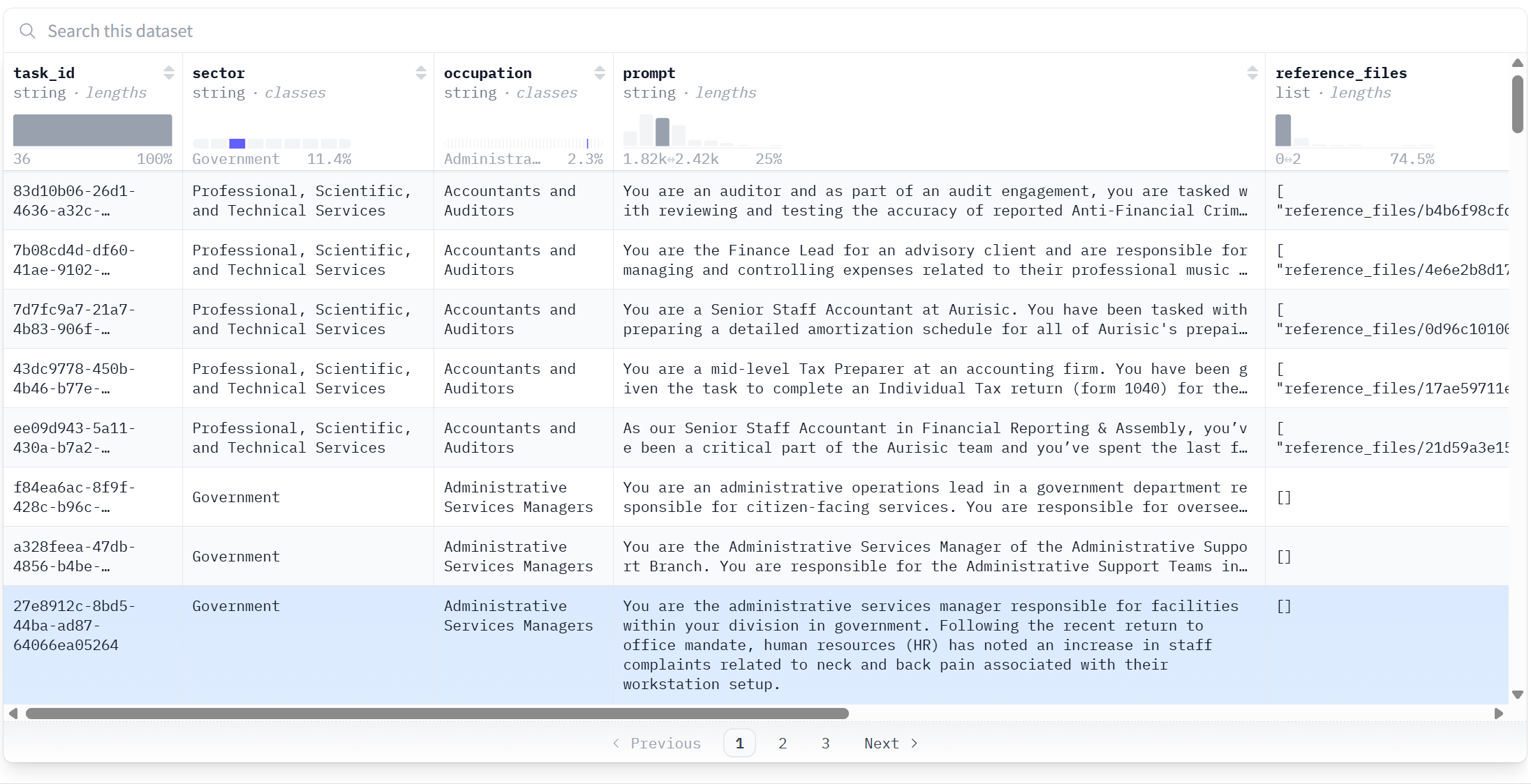 The database includes 220 prompts organised by sector, occupation, the prompt itself, and the files that got attached to each (yes!).